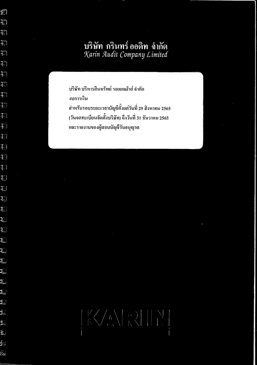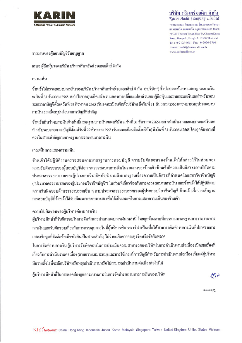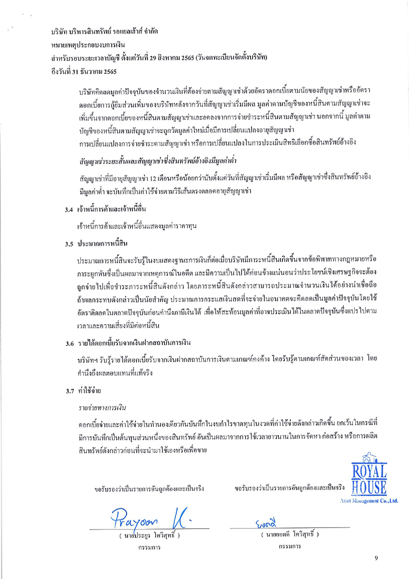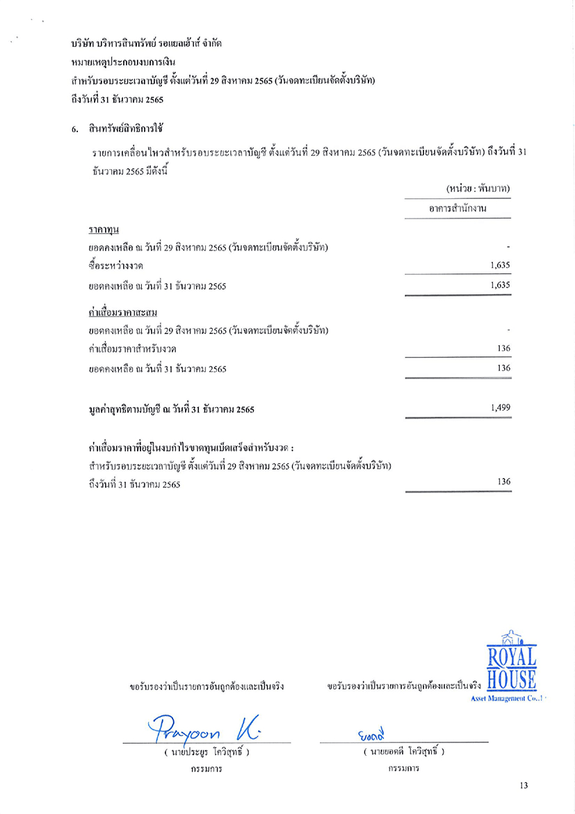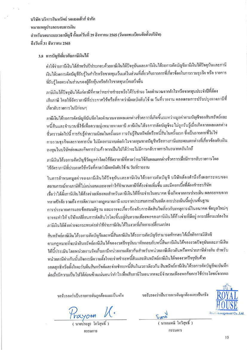 งบการเงิน 2565 บริษัท บริหารสินทรัพย์ รอแยลเฮ้าส์ จำกัด