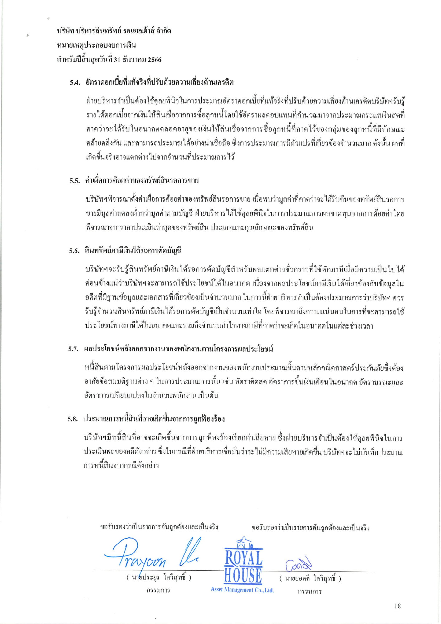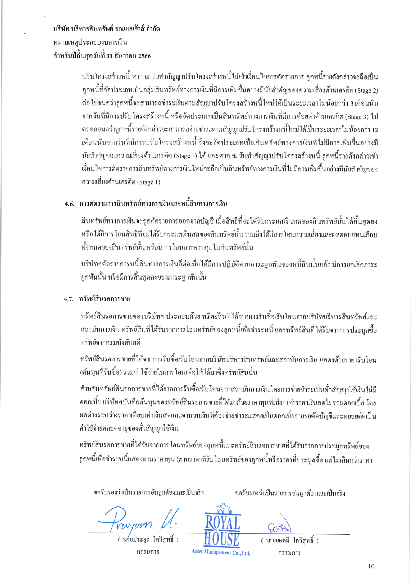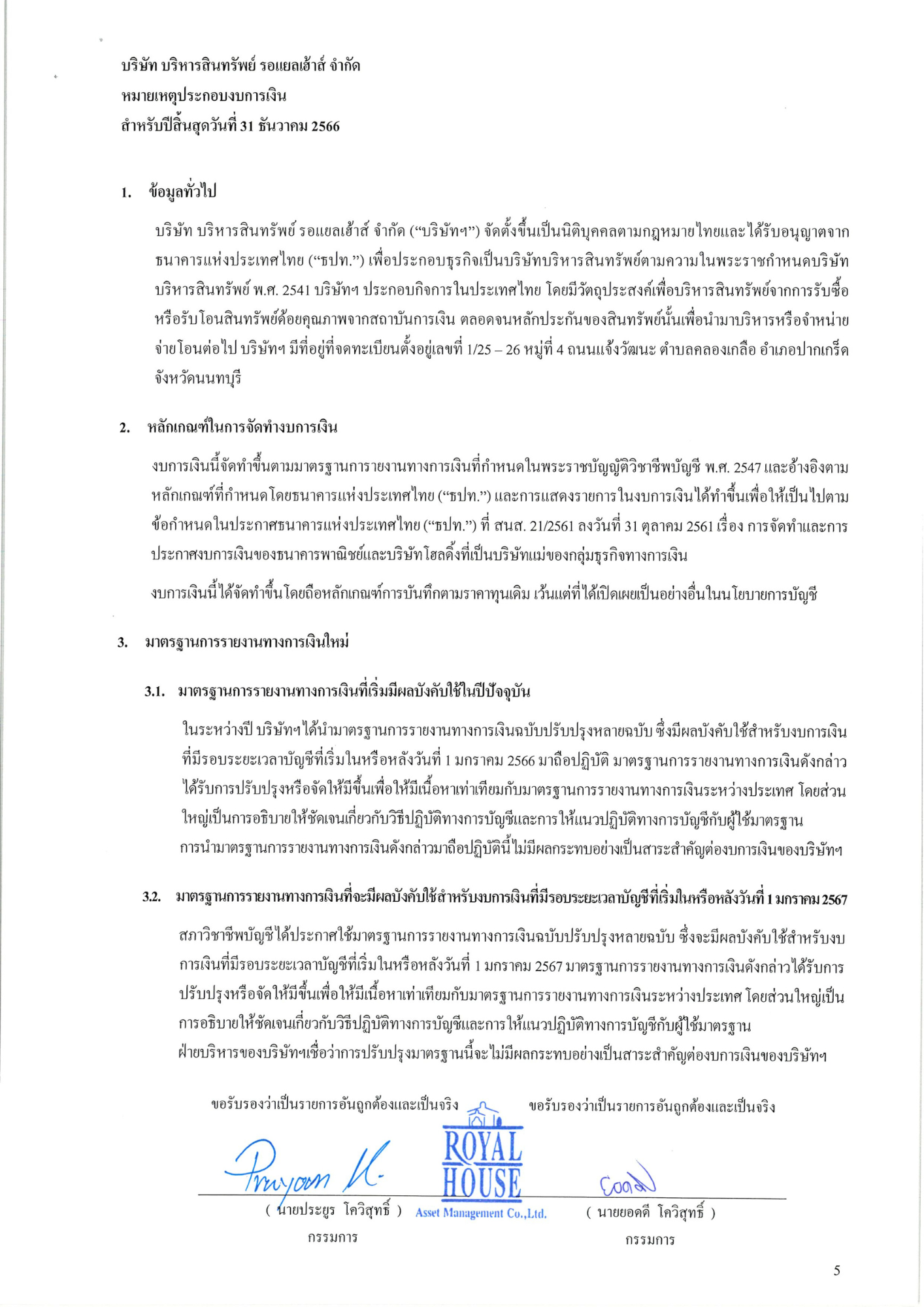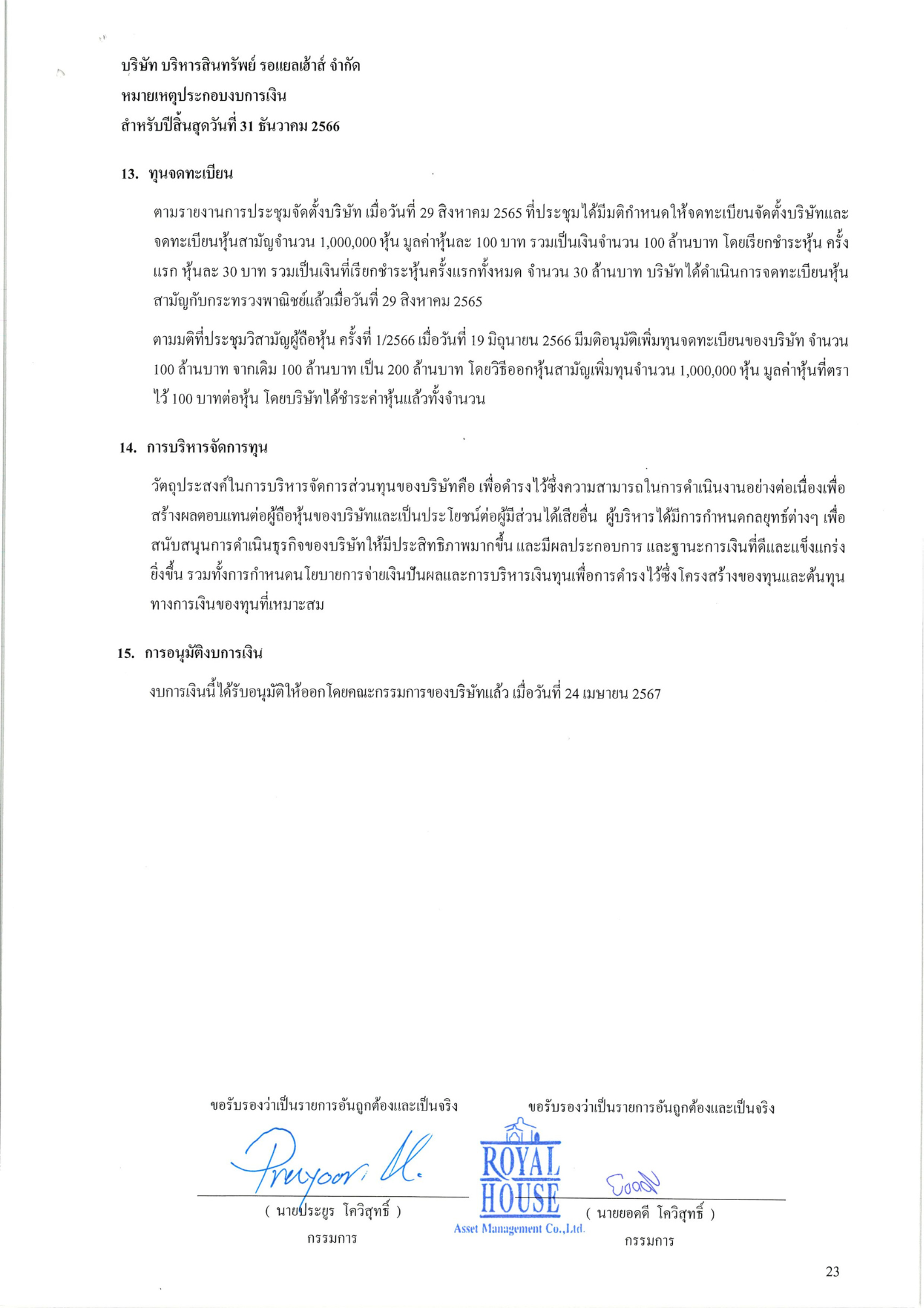 งบการเงินประจำปี 2566 บริษัท บริหารสินทรัพย์ รอแยลเฮ้าส์ จำกัด