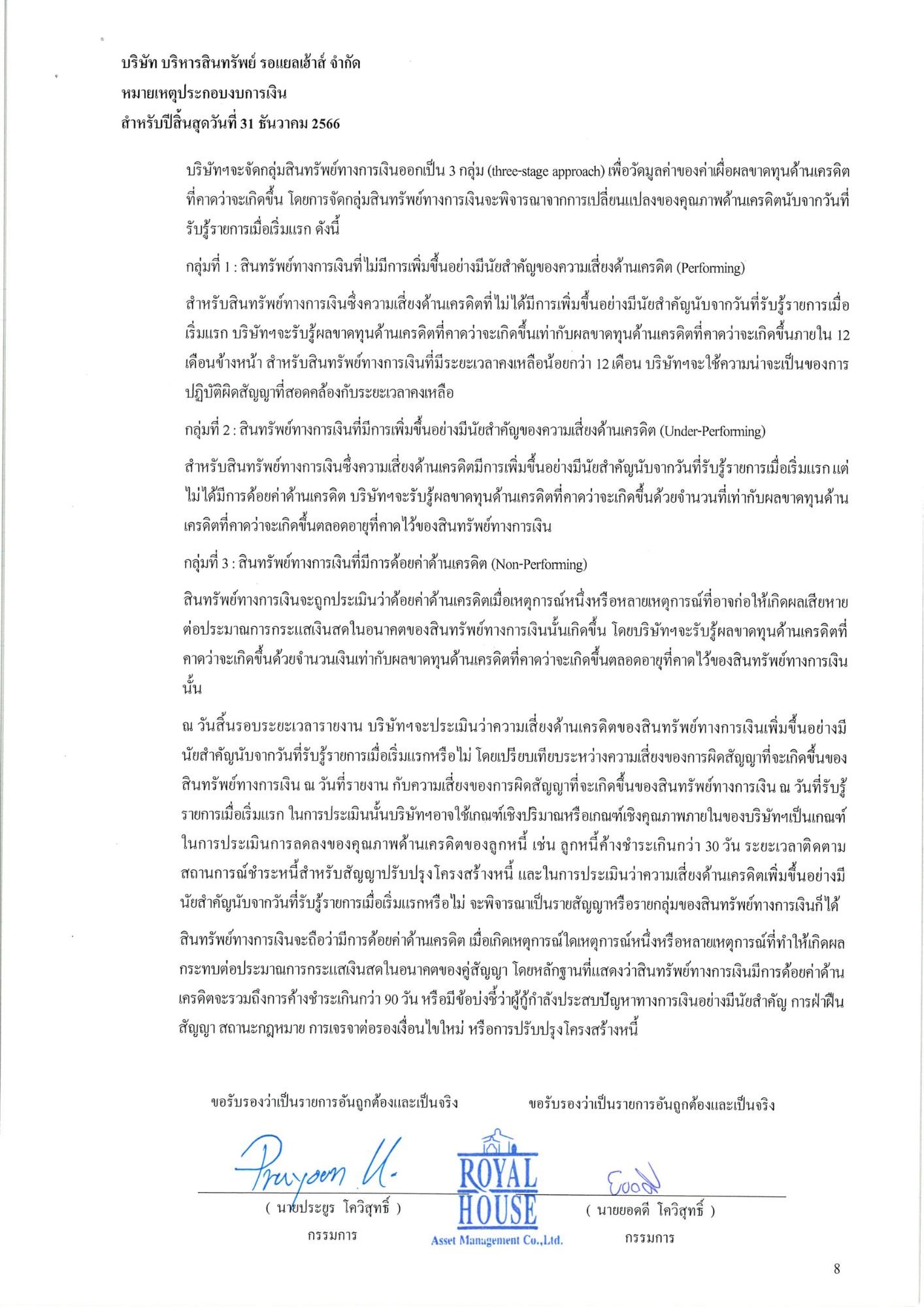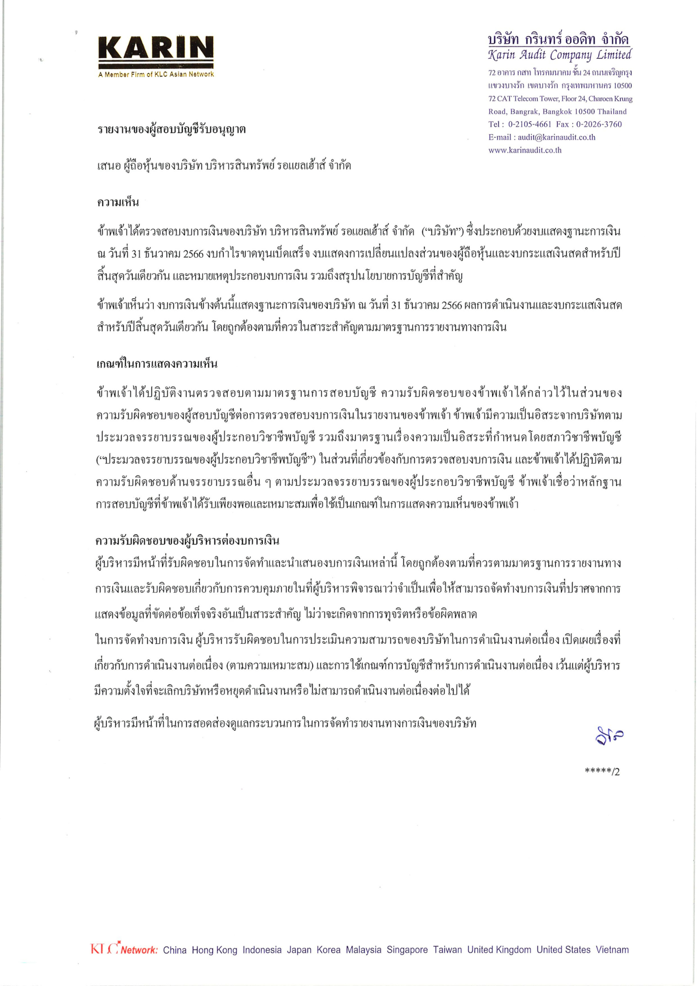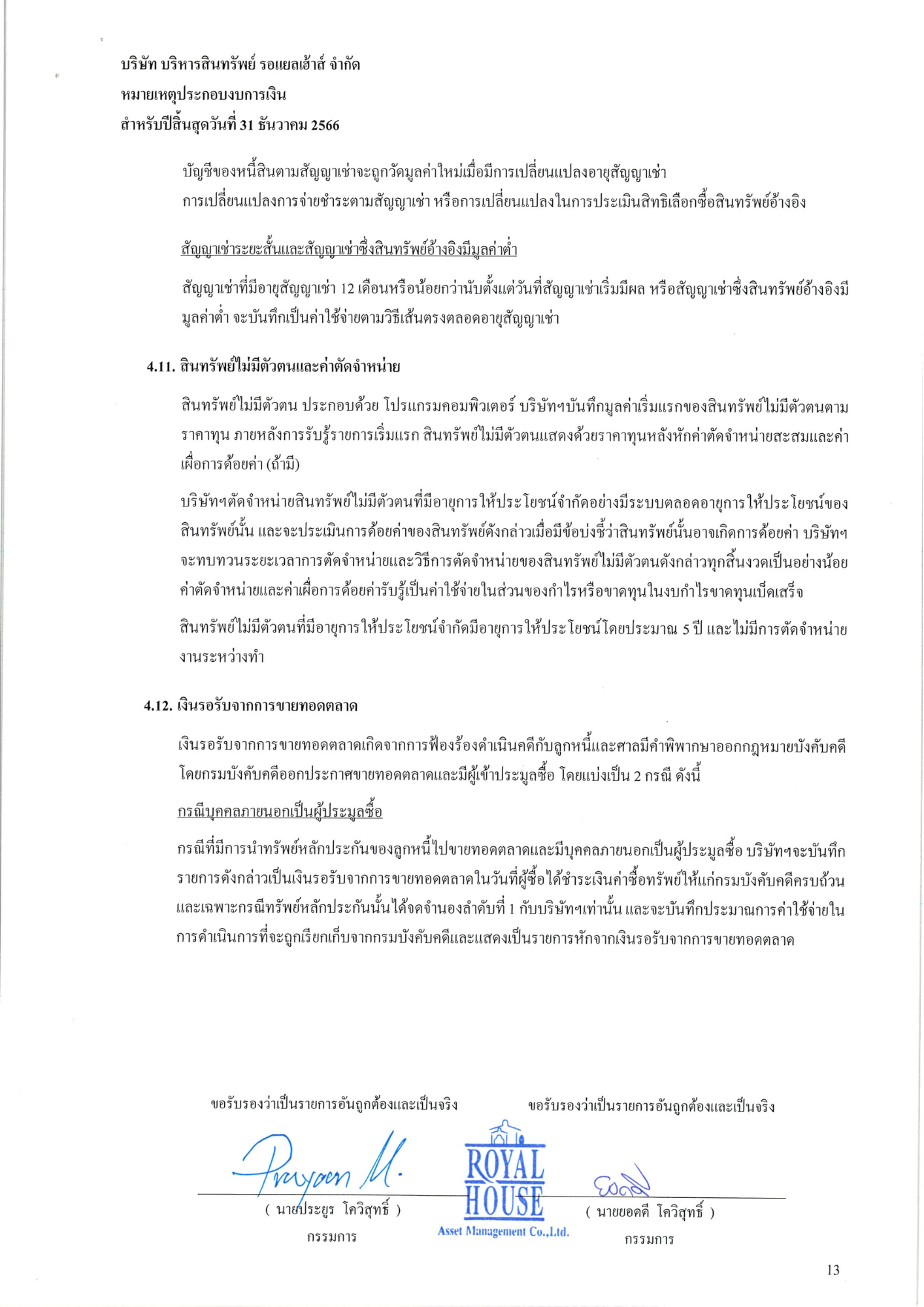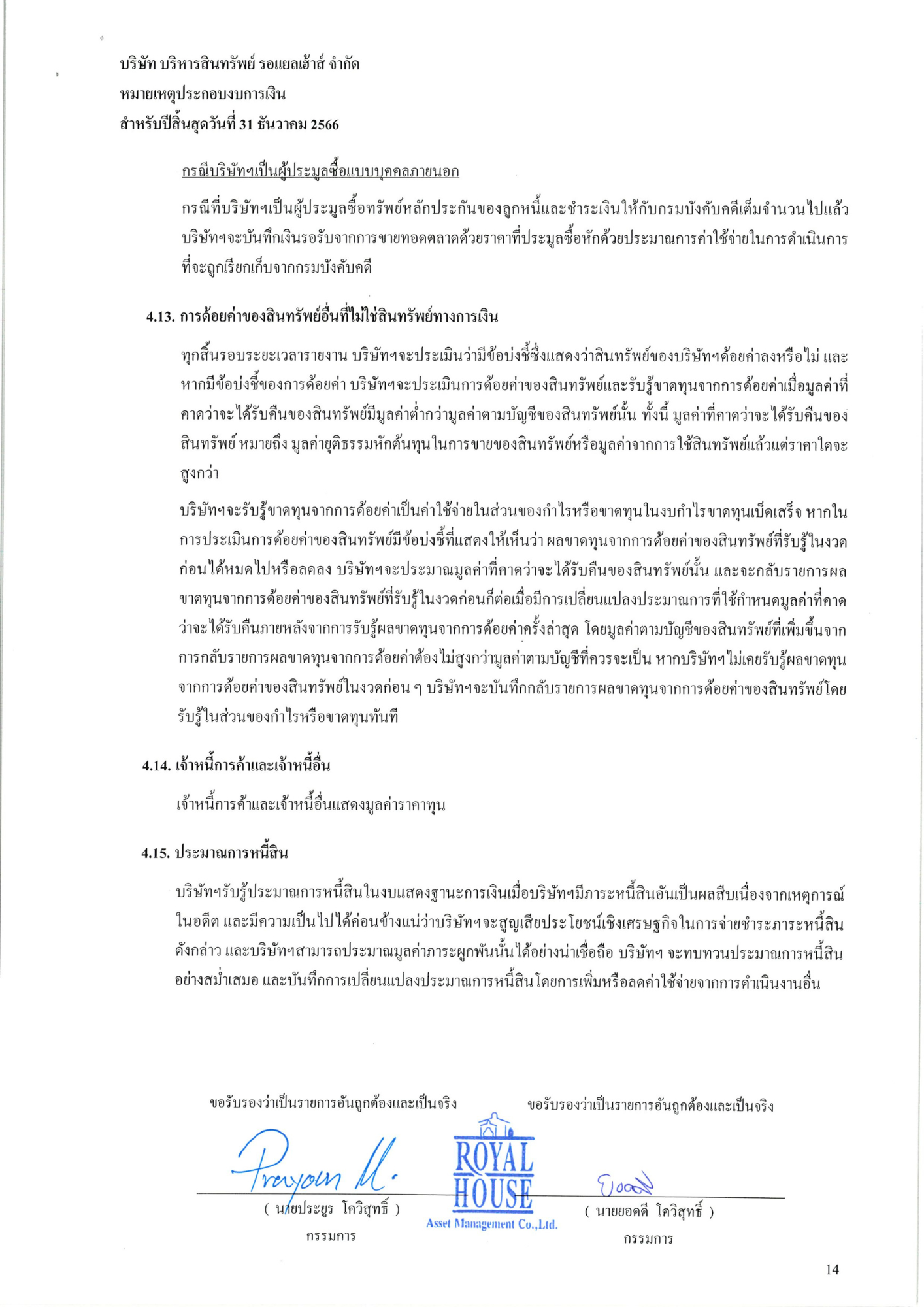 งบการเงินประจำปี 2566 บริษัท บริหารสินทรัพย์ รอแยลเฮ้าส์ จำกัด