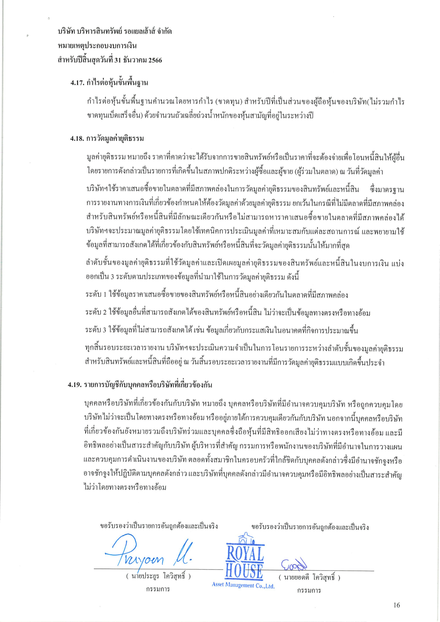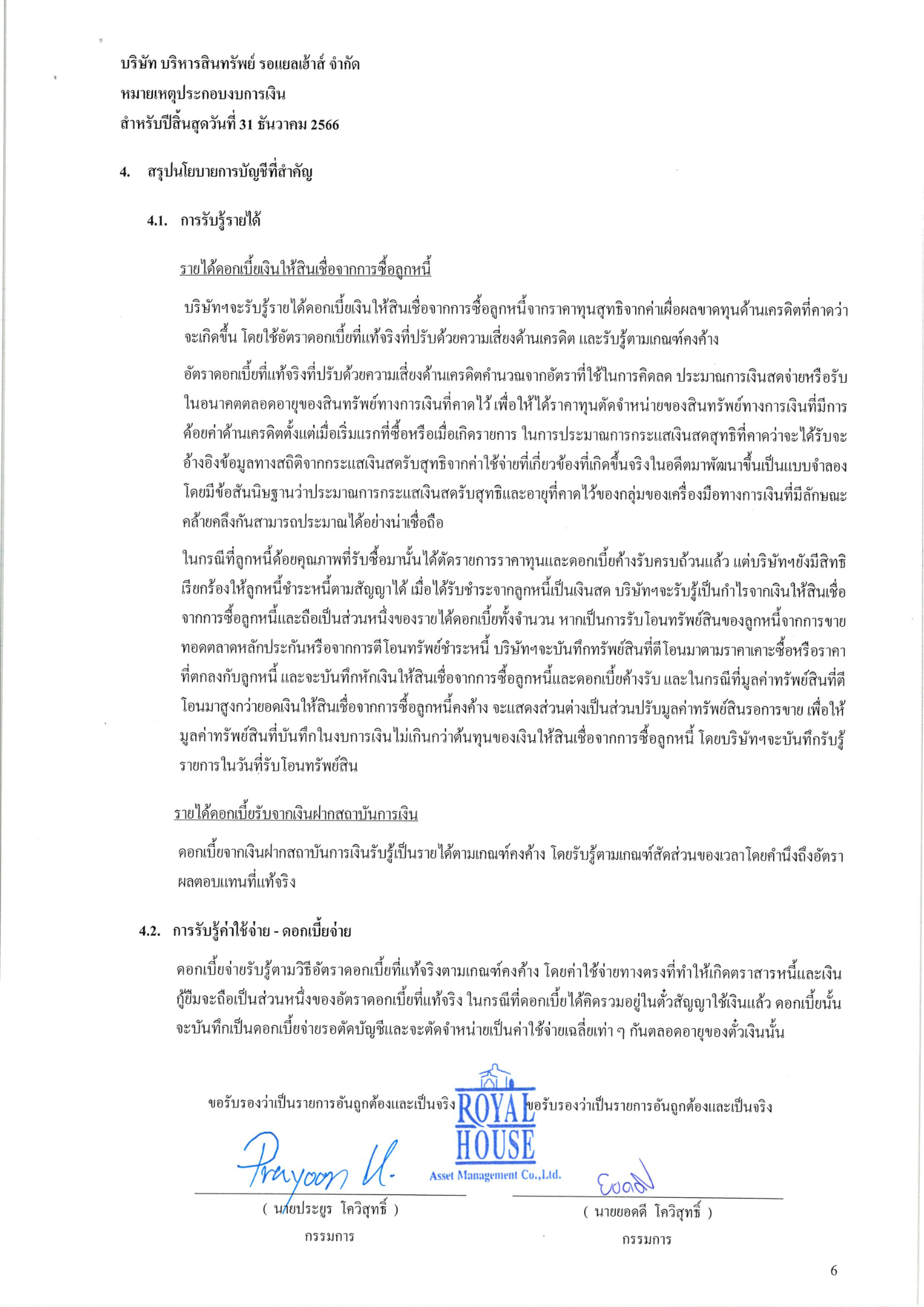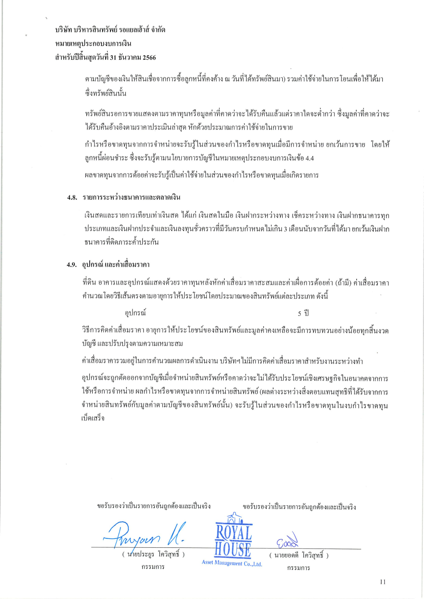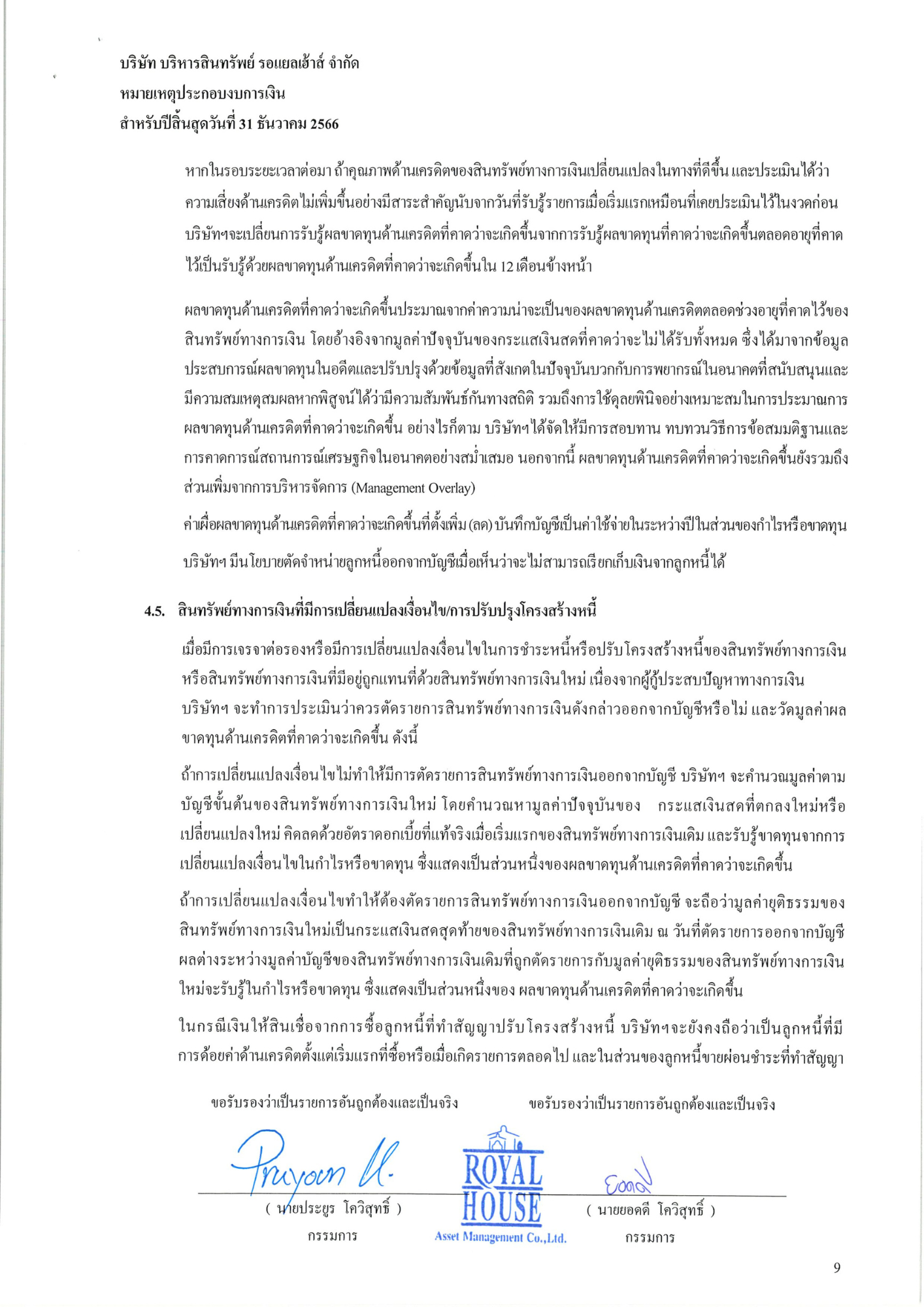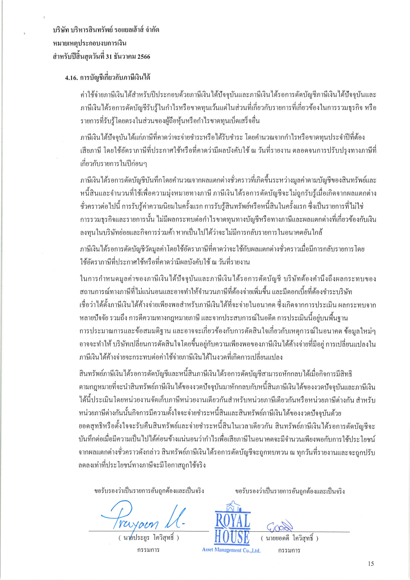 งบการเงินประจำปี 2566 บริษัท บริหารสินทรัพย์ รอแยลเฮ้าส์ จำกัด