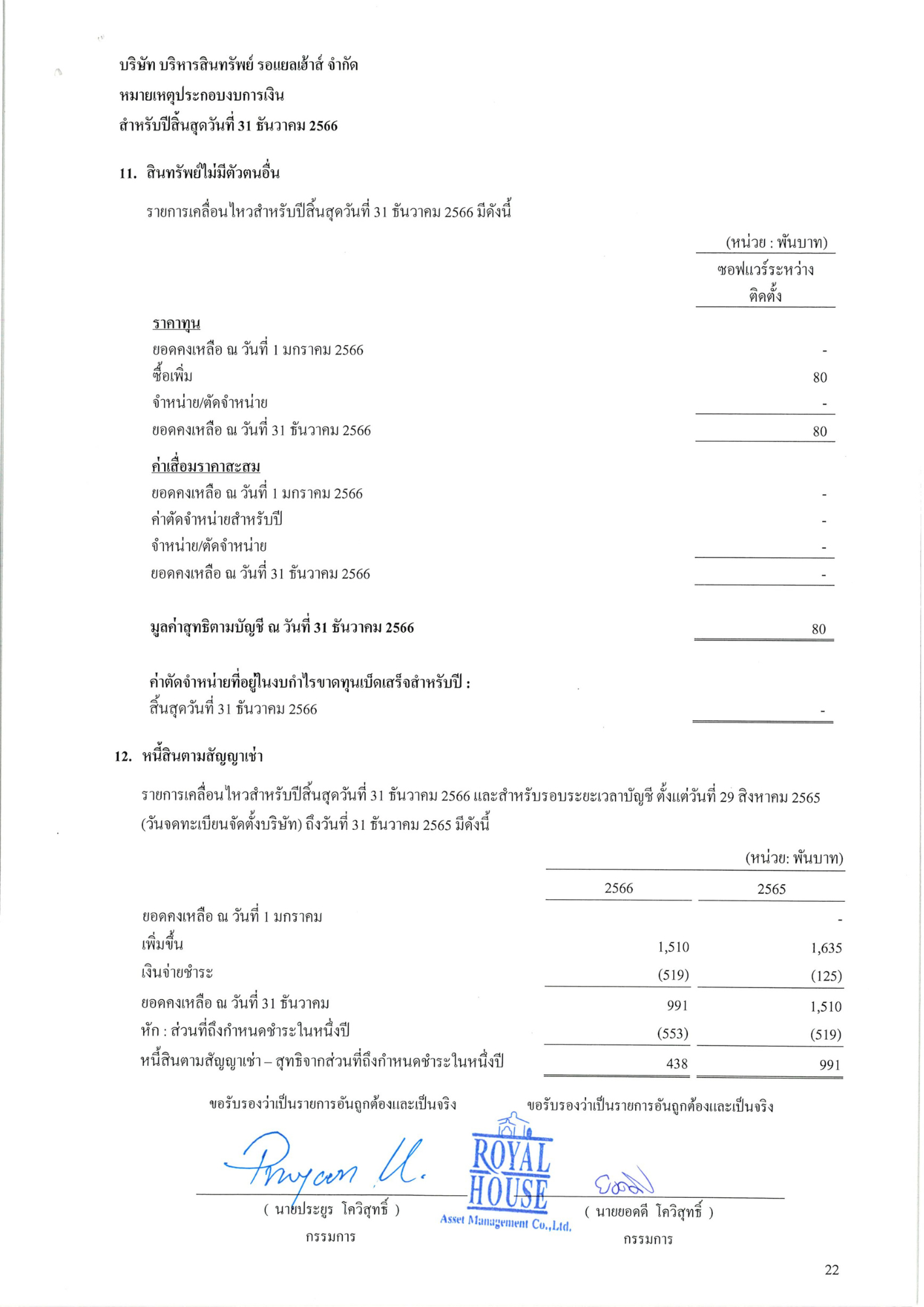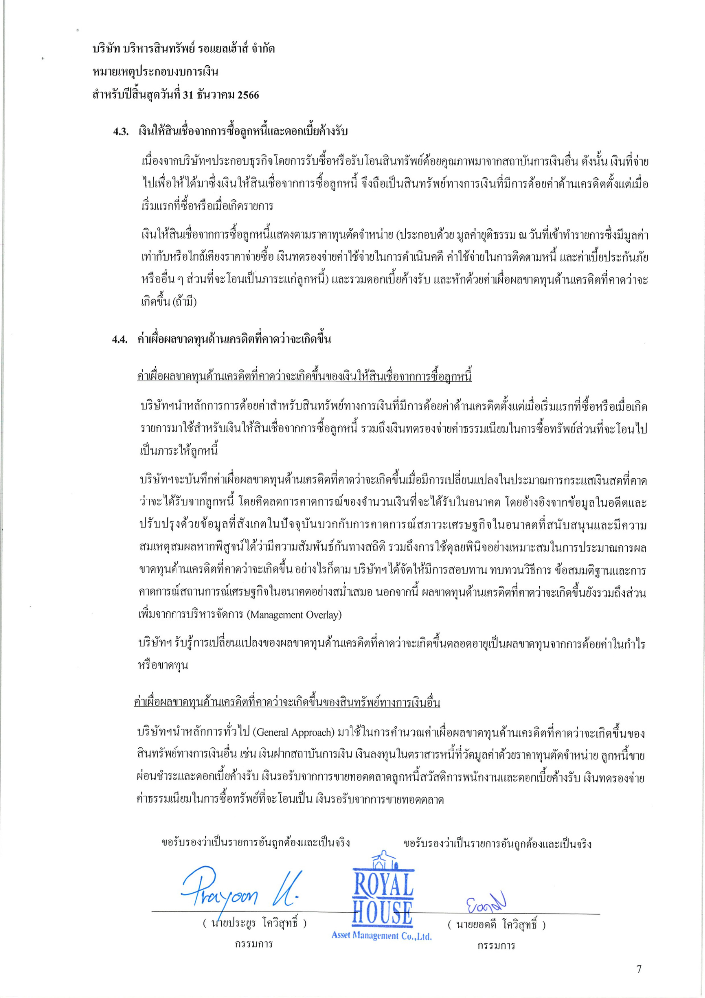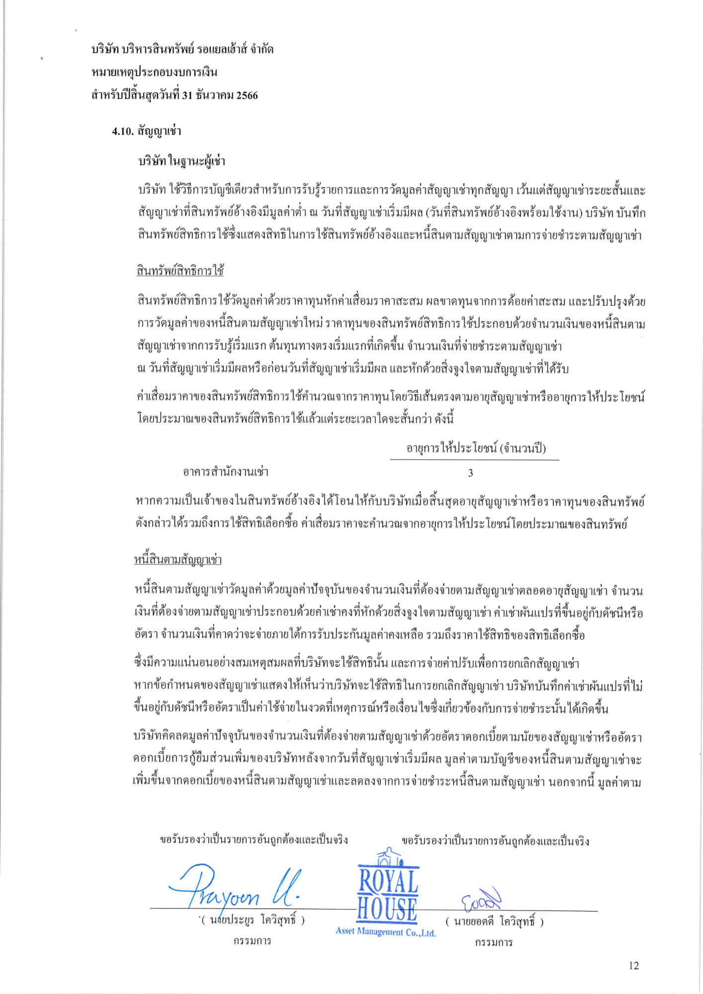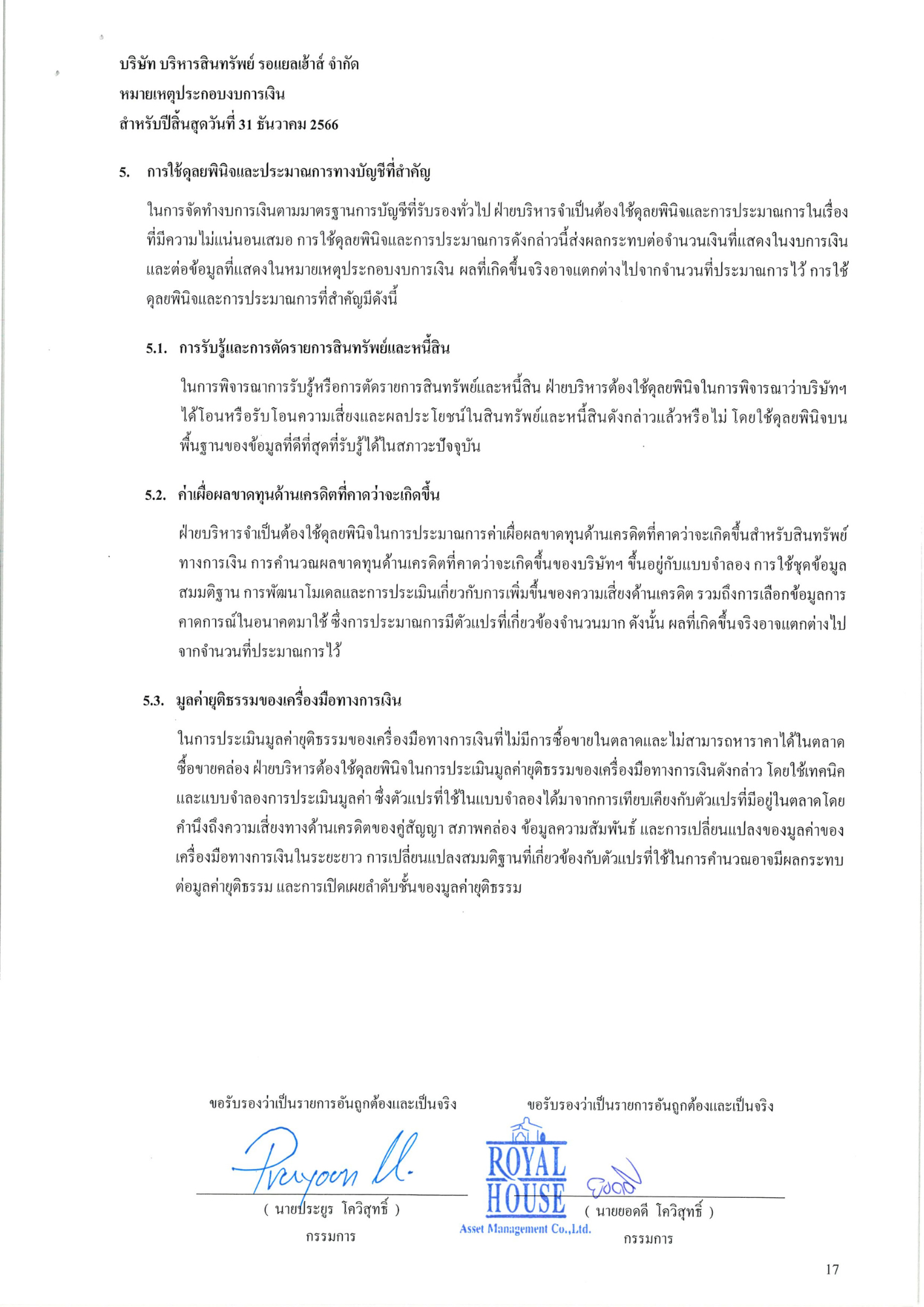 งบการเงินประจำปี 2566 บริษัท บริหารสินทรัพย์ รอแยลเฮ้าส์ จำกัด