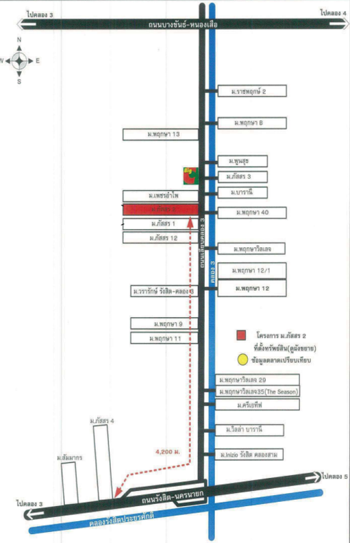 การเดินทางสะดวก ใกล้ทางด่วนถนนรังสิต-นครนายก สามารถเดินทางสู่ถนนถนนวิภาวดีรังสิต และถนนพหลโยธิน ใกล้ห้างสรรพสินค้าฟิวเจอร์พาร์ครังสิต โลตัสรังสิตคลอง 4 บิ๊กซีรังสิตคลอง 6 ใกล้มหาวิทยาลัยอีสเทิร์นเอเชีย ใกล้โรงพยาบาลปทุมเวช ,โรงพยาบาลเอกปทุม