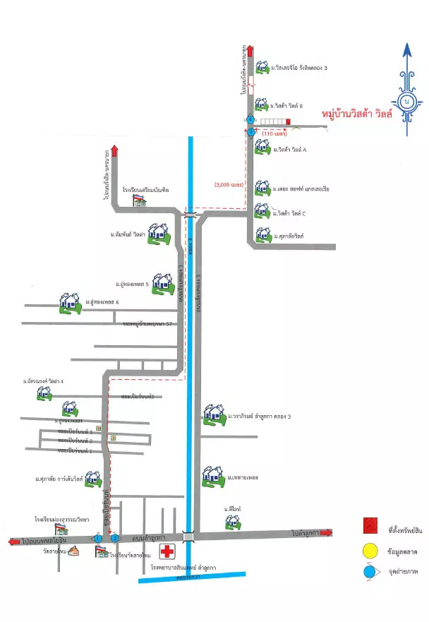 ทรัพย์ติดถนนโครงการ ห่างจากถนนเลียบคลอง 3 เพียง100 เมตร โครงการอยู่อาศัยและกลางกลางลาดสวาย สามารถเดินทางสู่ MRT คูคต และทางด่วน และเดินทางสู่ดอนเมืองได้หลายเส้นทาง ใกล้ BIG C โรงพยาบาลสินแพทย์ ลำลูกกา