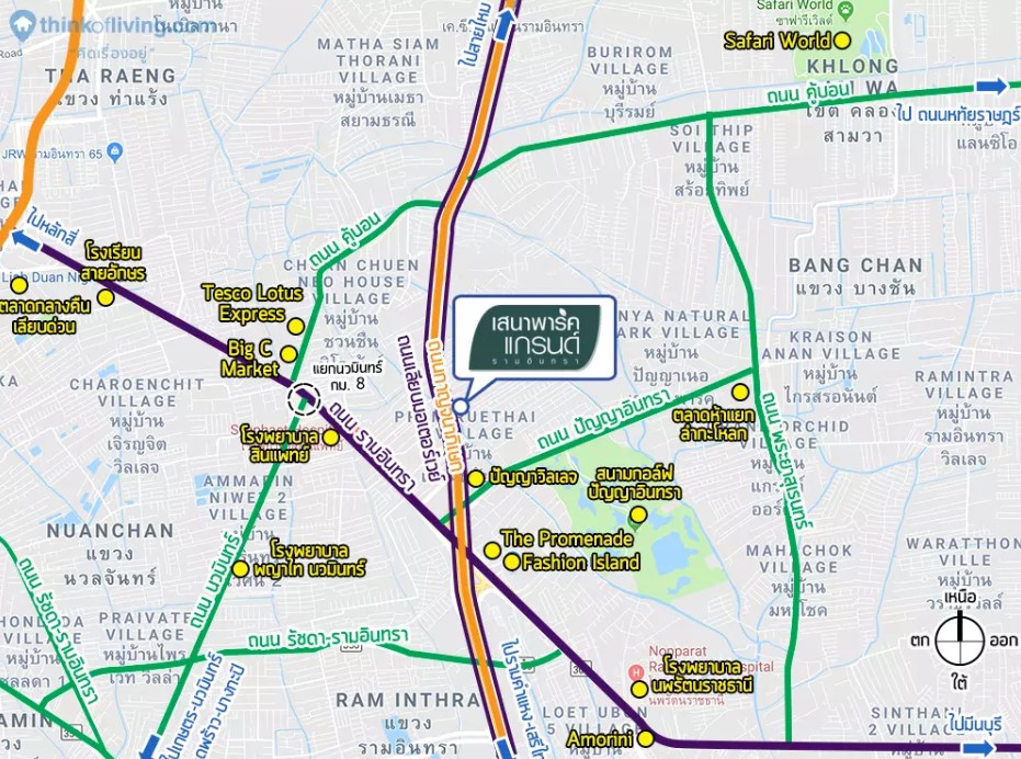 โครงการ Sena Park Grand รามอินทรา ตั้งอยู่บนถนนคู่ขนานกาญจนาภิเษก สามารถเข้าโครงการได้จากถนน 2 เส้น คือถนนคู่ขนานกาญจนาภิเษก และมีทางลัดเชื่อมต่อกับถนนรามอินทรา ผ่าน Sena Park Avenue ได้