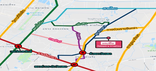 ถนนเทพรักษ์  ถนนพหลโยธิน  ทางด่วนจตุโชค และถนนวงแหวนฯ